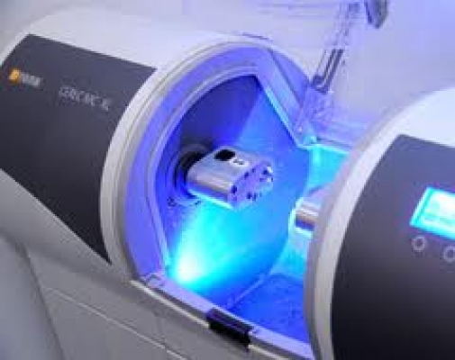 After the final design and completion of the new restoration on the 3D cerec software, the dentist is now ready for the next step. A high quality ceramic block that matches your tooth shade is placed in the special cerec milling unit and is ready to be milled. Fine diamond burs under water cooling cut out the exact design from the block within 10 - 15 minutes. The new restoration is then polished and the dentist further have the option to use a special furnace to apply further characterizing and glazing on the restoration to give it a high gloss finish.